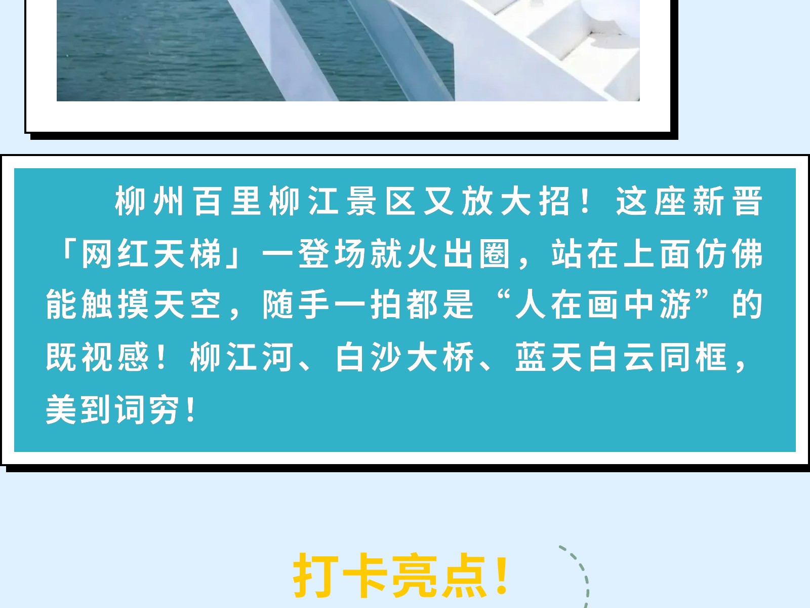 柳州新晉頂流打卡點!東堤旅游碼頭天梯×游艇!隨手一拍就是大片! 發(fā)布時間:2025年05月06日 16時來源:本站原創(chuàng)瀏覽:227 人次
