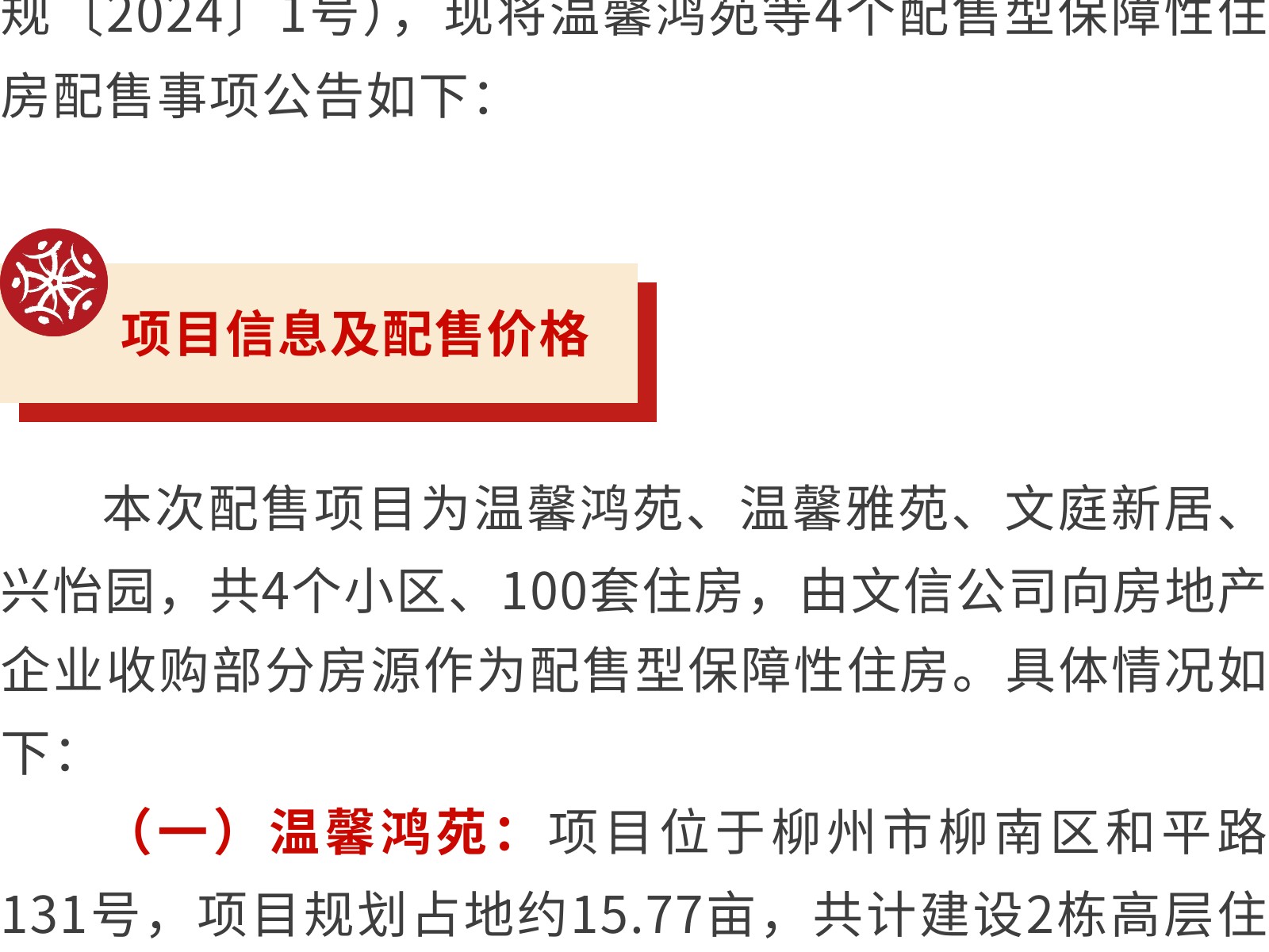 柳州市第二批配售型保障性住房配售公告 發(fā)布時(shí)間:2025年11月08日 11時(shí)來(lái)源:本站原創(chuàng)瀏覽:150 人次