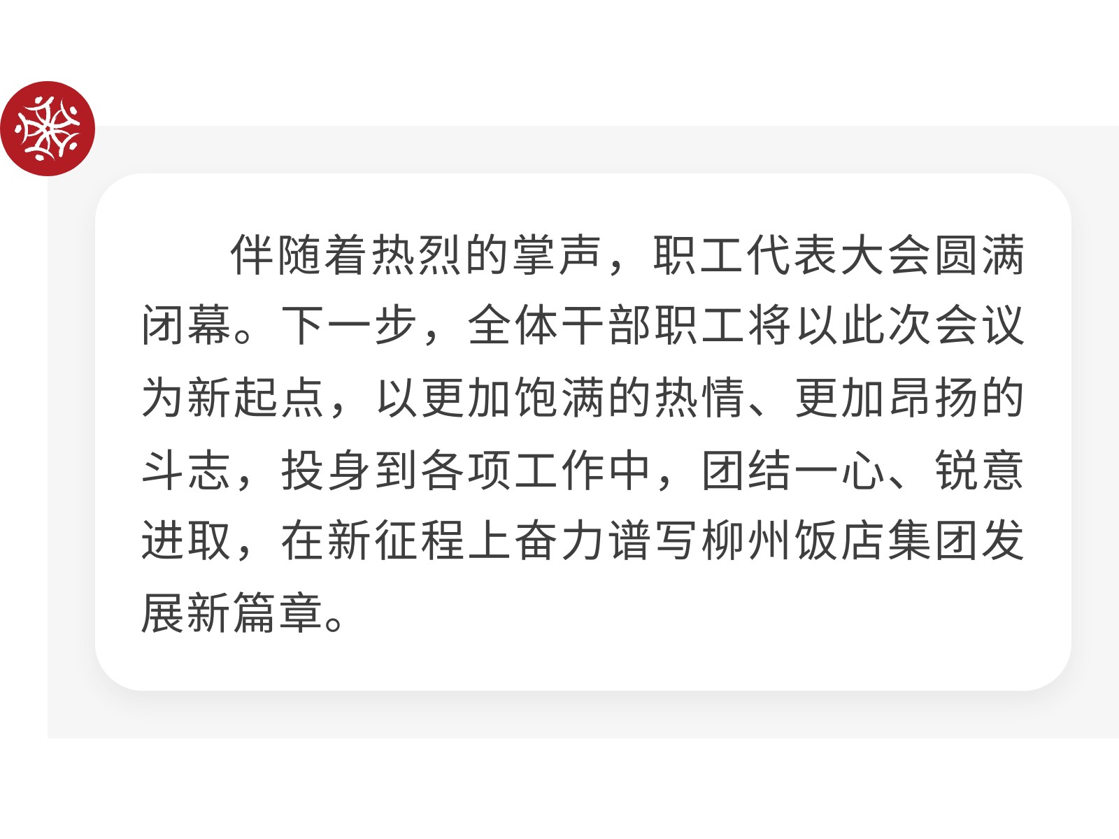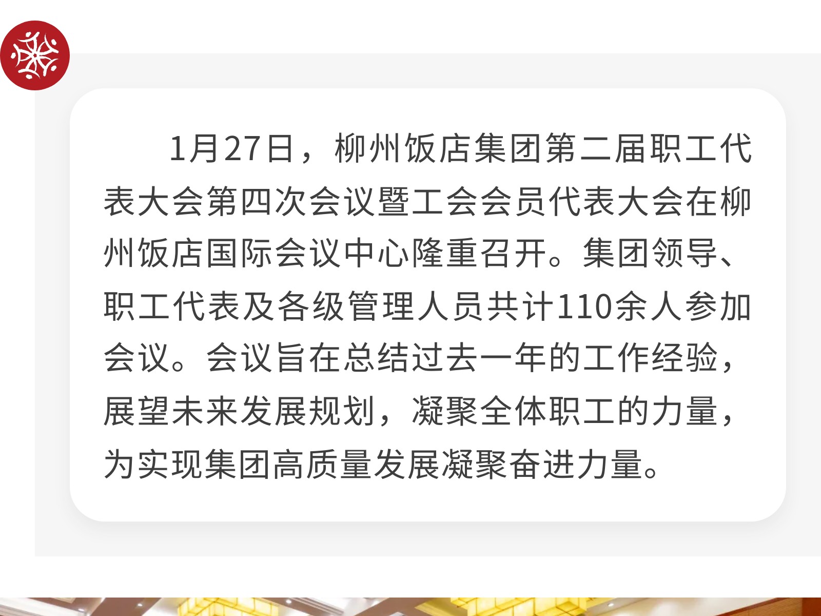 錨定新目標 凝心聚力啟新程——柳州飯店集團第二屆職工代表大會第四次會議暨工會會員代表大會勝利召開 發(fā)布時間:2026年01月30日 10時來源:本站原創(chuàng)瀏覽:60 人次