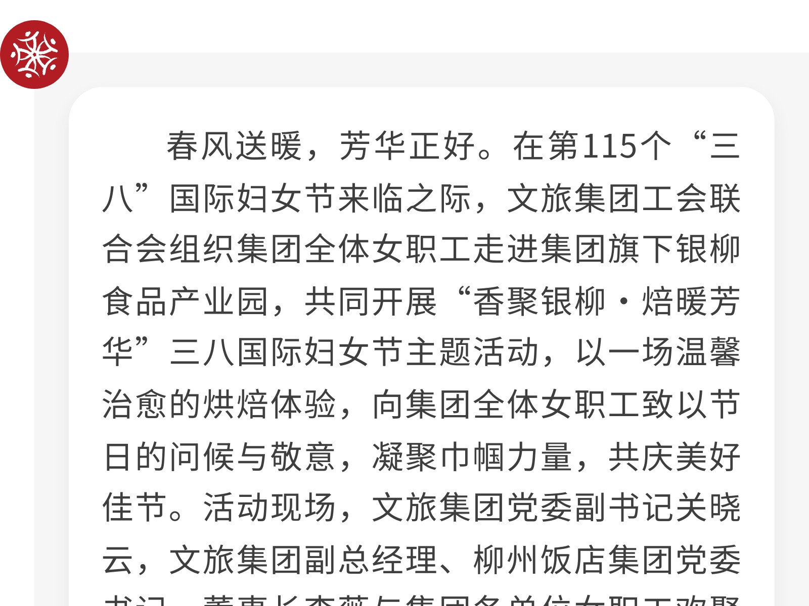香聚銀柳·焙暖芳華——文旅集團工會聯(lián)合會三八節(jié)主題活動在銀柳食品溫情舉辦 發(fā)布時間:2026年03月11日 09時來源:本站原創(chuàng)瀏覽:17 人次