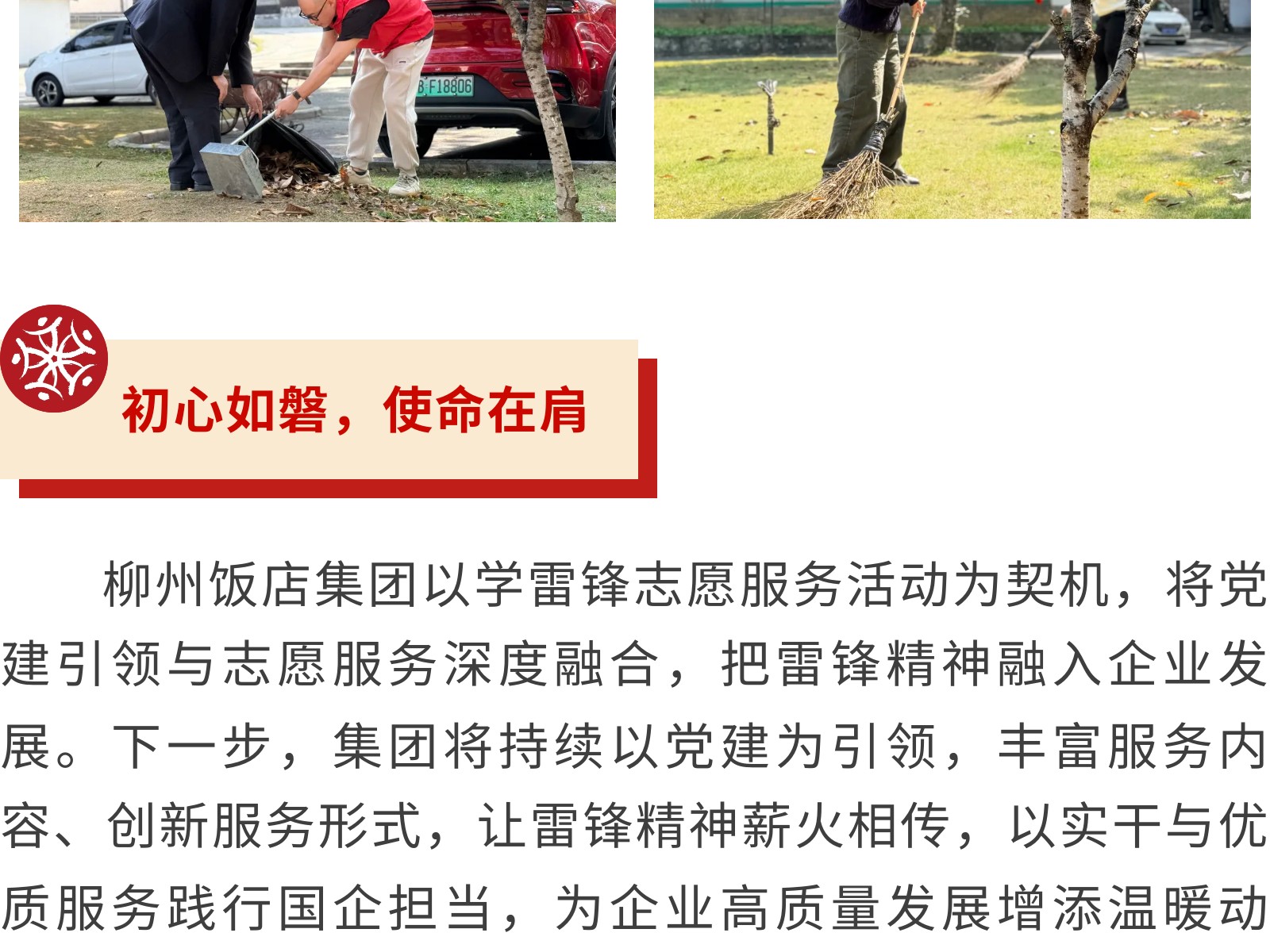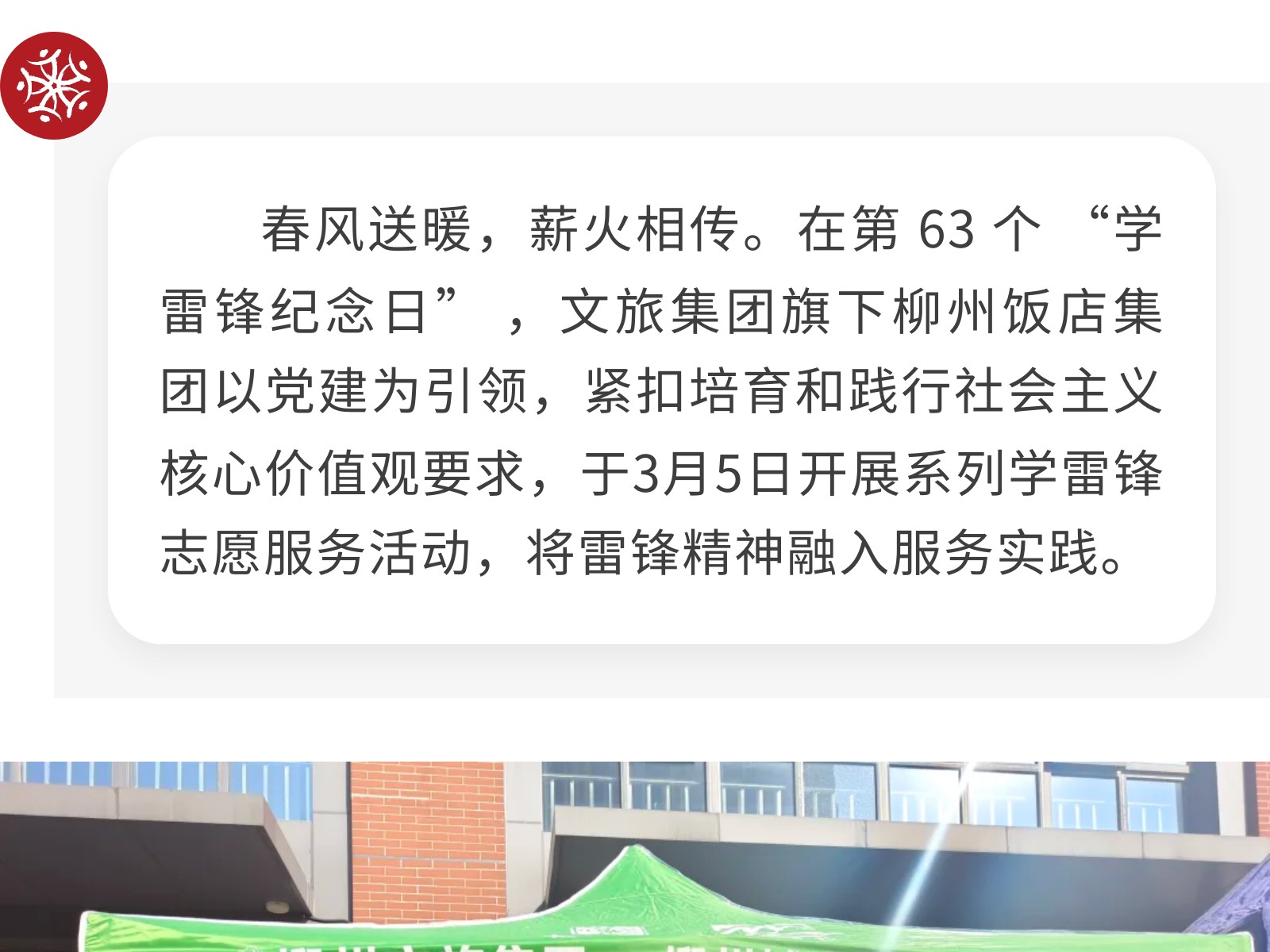 黨建引領(lǐng)聚初心 雷鋒精神綻芳華——柳州飯店集團(tuán)開(kāi)展學(xué)雷鋒志愿服務(wù)活動(dòng) 發(fā)布時(shí)間:2026年03月10日 09時(shí)來(lái)源:本站原創(chuàng)瀏覽:15 人次